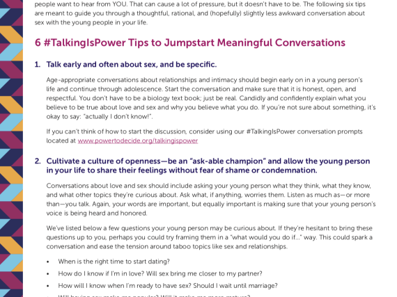 Use this discussion guide to start powerful conversations around sex, love, and relationships.
